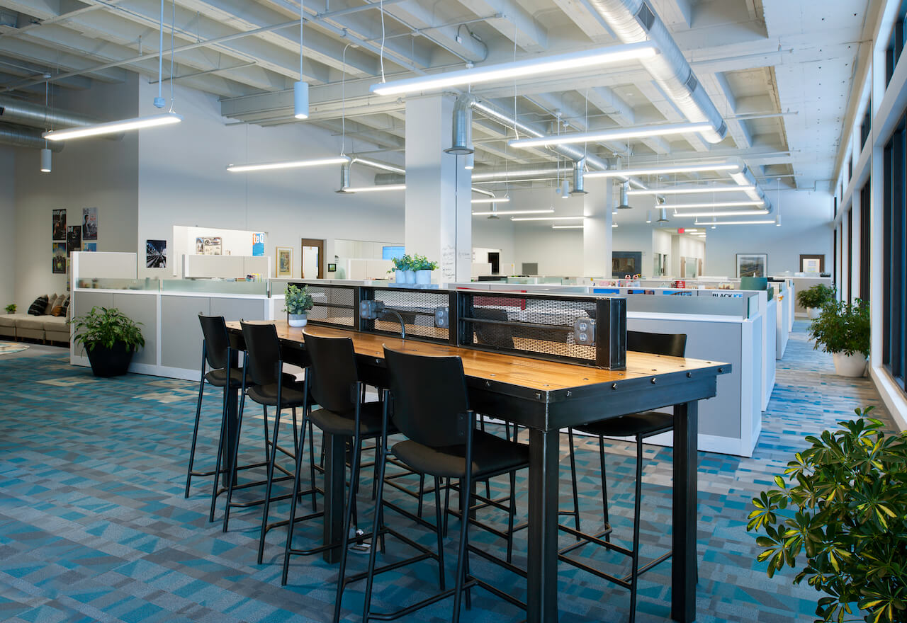 The Pittsburgh Tech Council's awesome space on the North Shore centered around an open-office concept with striking visuals on a value-oriented budget. Workscape furnished the office's workstations, conference rooms, meeting spaces, lounge, and kitchen with modern furniture, primarily from Knoll.